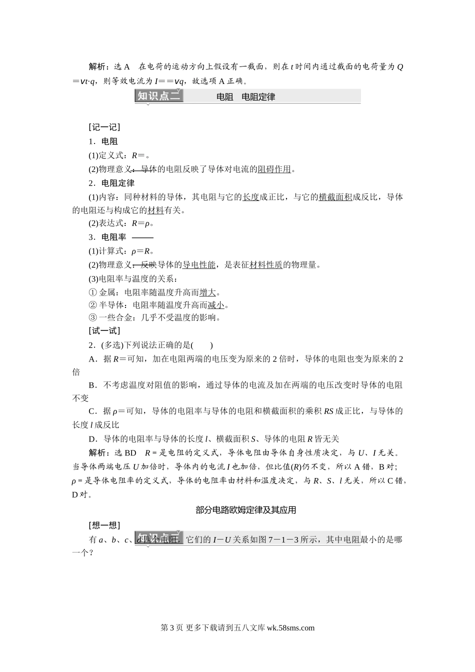 高三物理高考物理一轮复习题及答案解析 第七章 恒定电流.doc_第2页