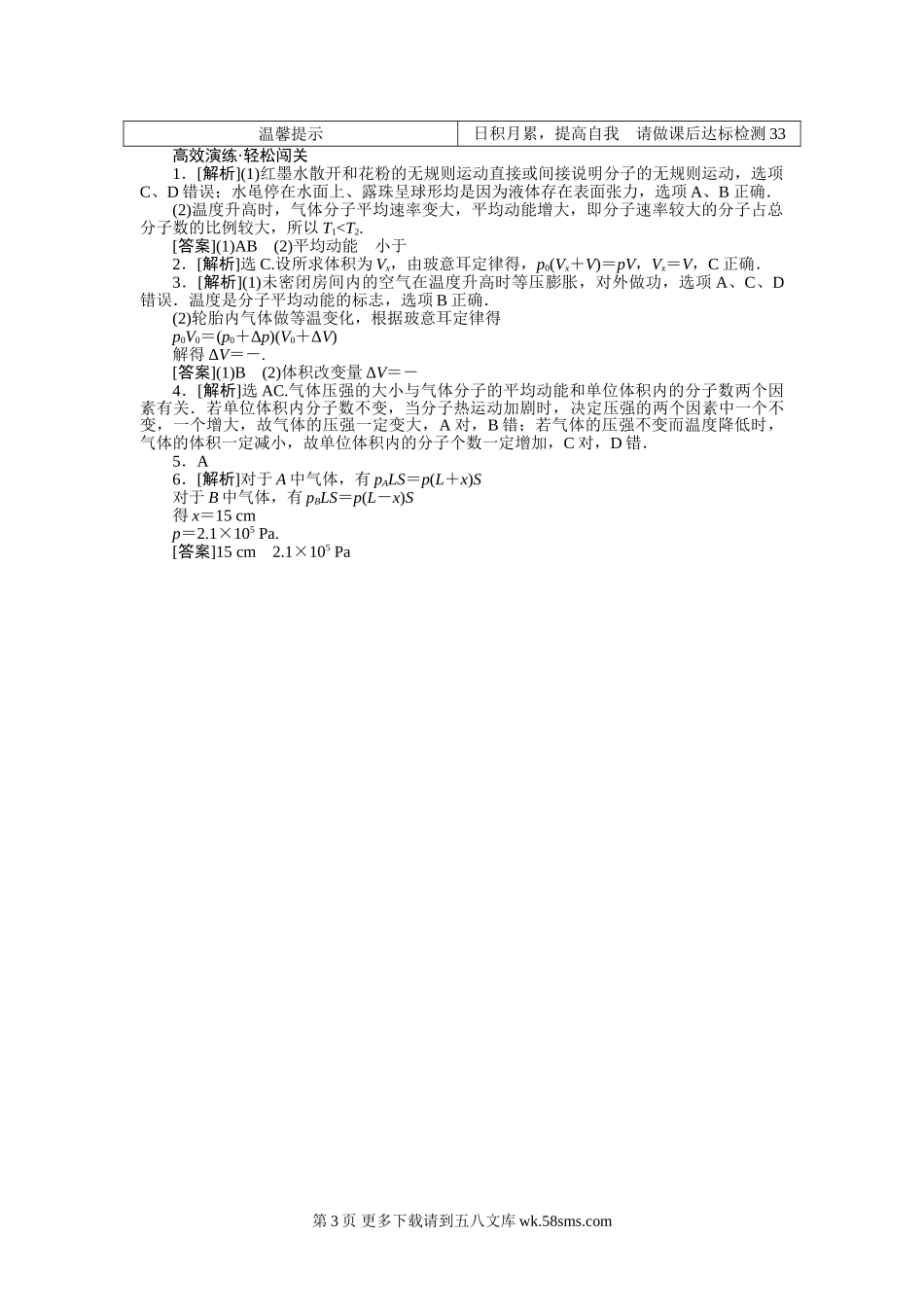 高三物理高三物理第一轮复习 第十一章 热学练习题及答案解析.doc_第3页