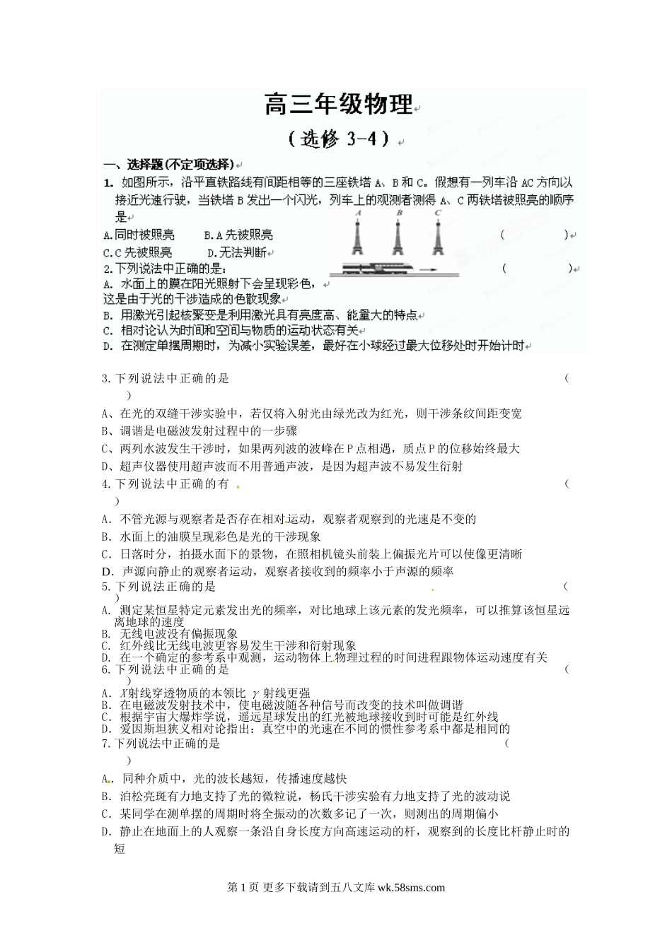 高三物理高三物理选修3-4练习题.doc_第1页