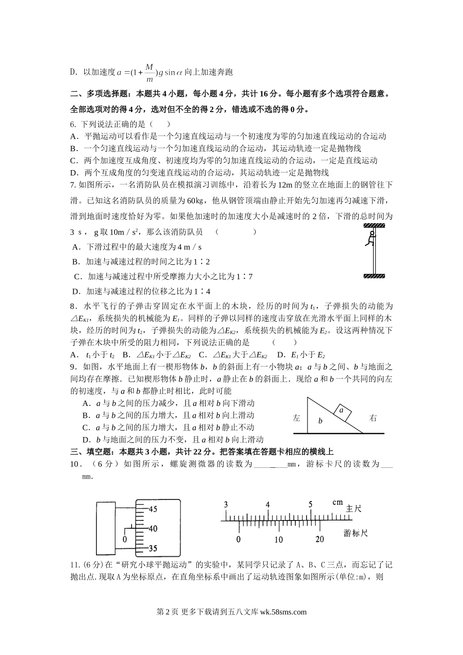 高三物理南京市江浦高中高三第二次物理试卷及答案.doc_第2页