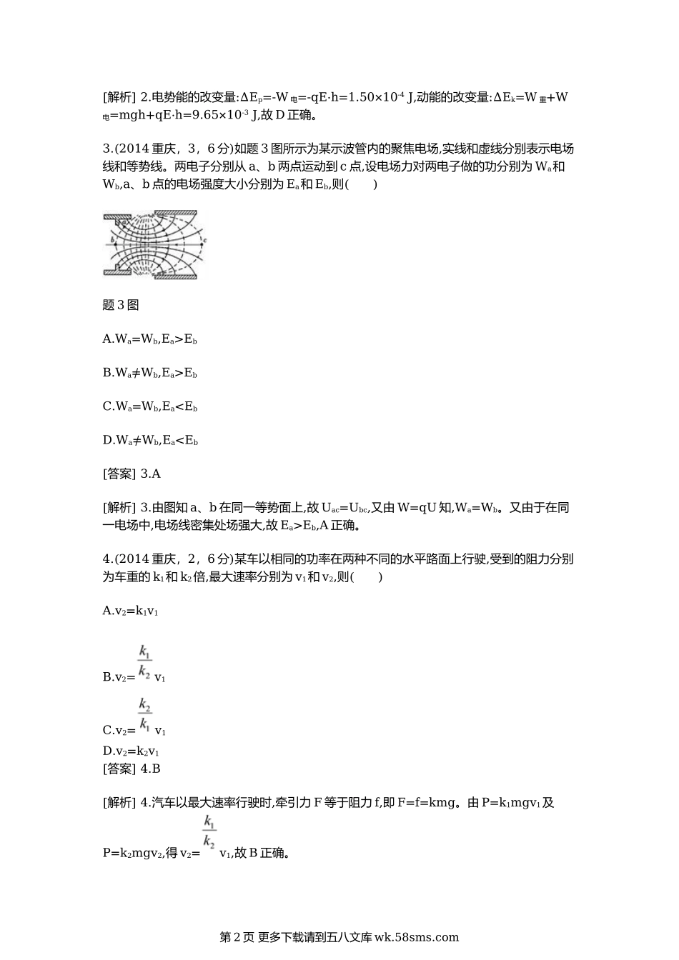 高考物理二轮复习题:机械能(含2014高考题).doc_第2页