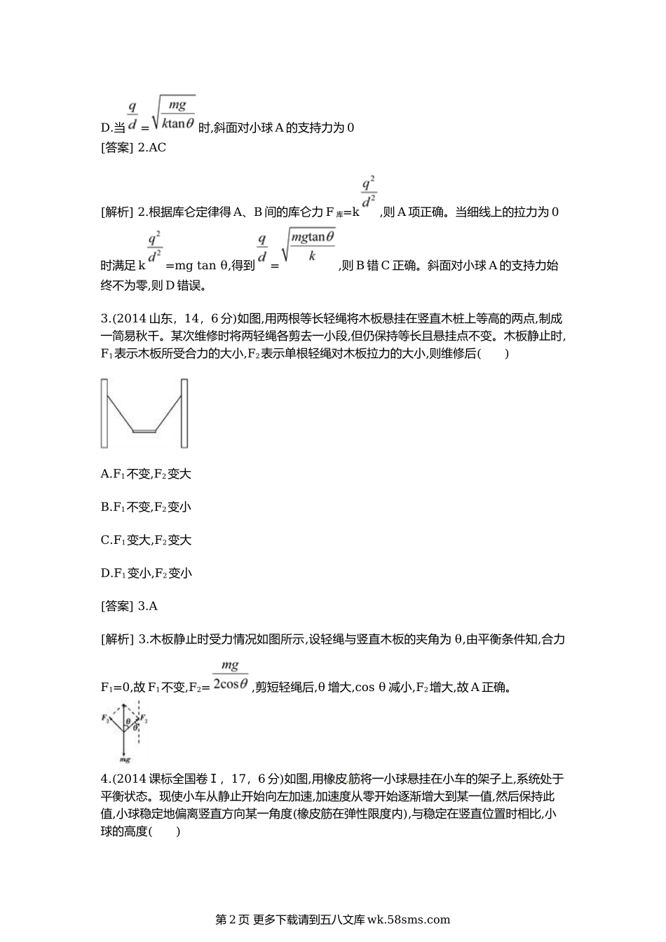 高考物理二轮复习题:相互作用(含2014高考题).doc_第2页