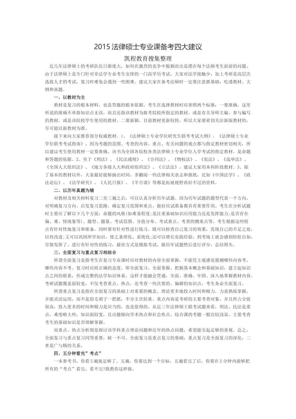 2015法律硕士专业课备考四大建议凯程教育搜集整理近几年法律硕士的考研队伍日渐庞大,如何在激烈的竞争中脱颖而出是摆在每个法硕考生面前的问题。由于法律硕士是专门针对非法学专业考生安排的一门高学历考试,大...