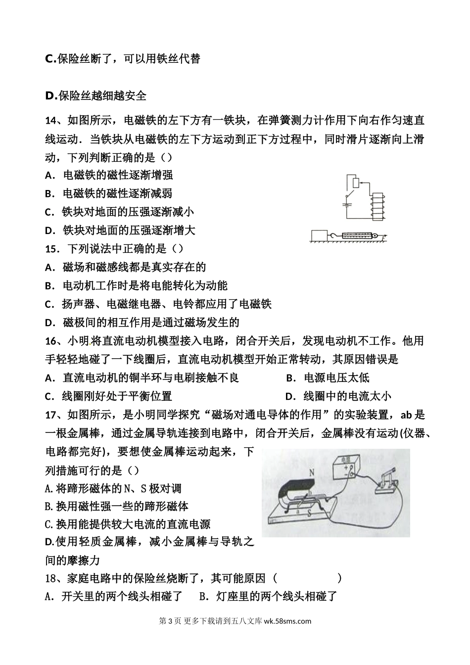 2013九年级物理12月段电功率、生活用电、电与磁检测题.doc_第3页