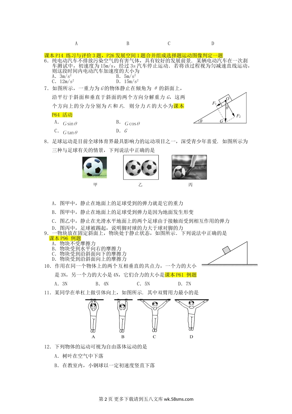 高一物理丰台区高一物理期末试卷.doc_第2页