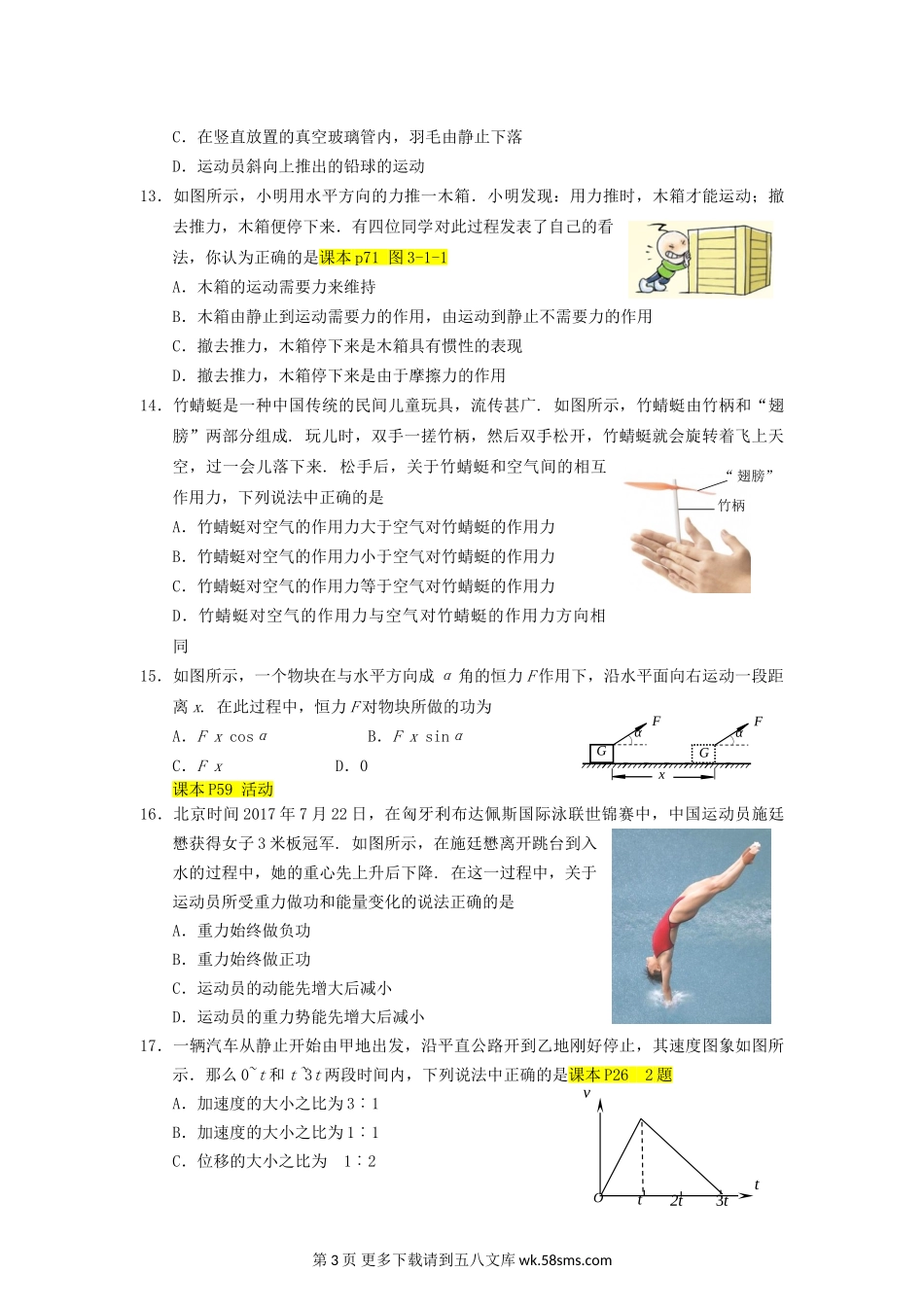 高一物理丰台区高一物理期末试卷.doc_第3页
