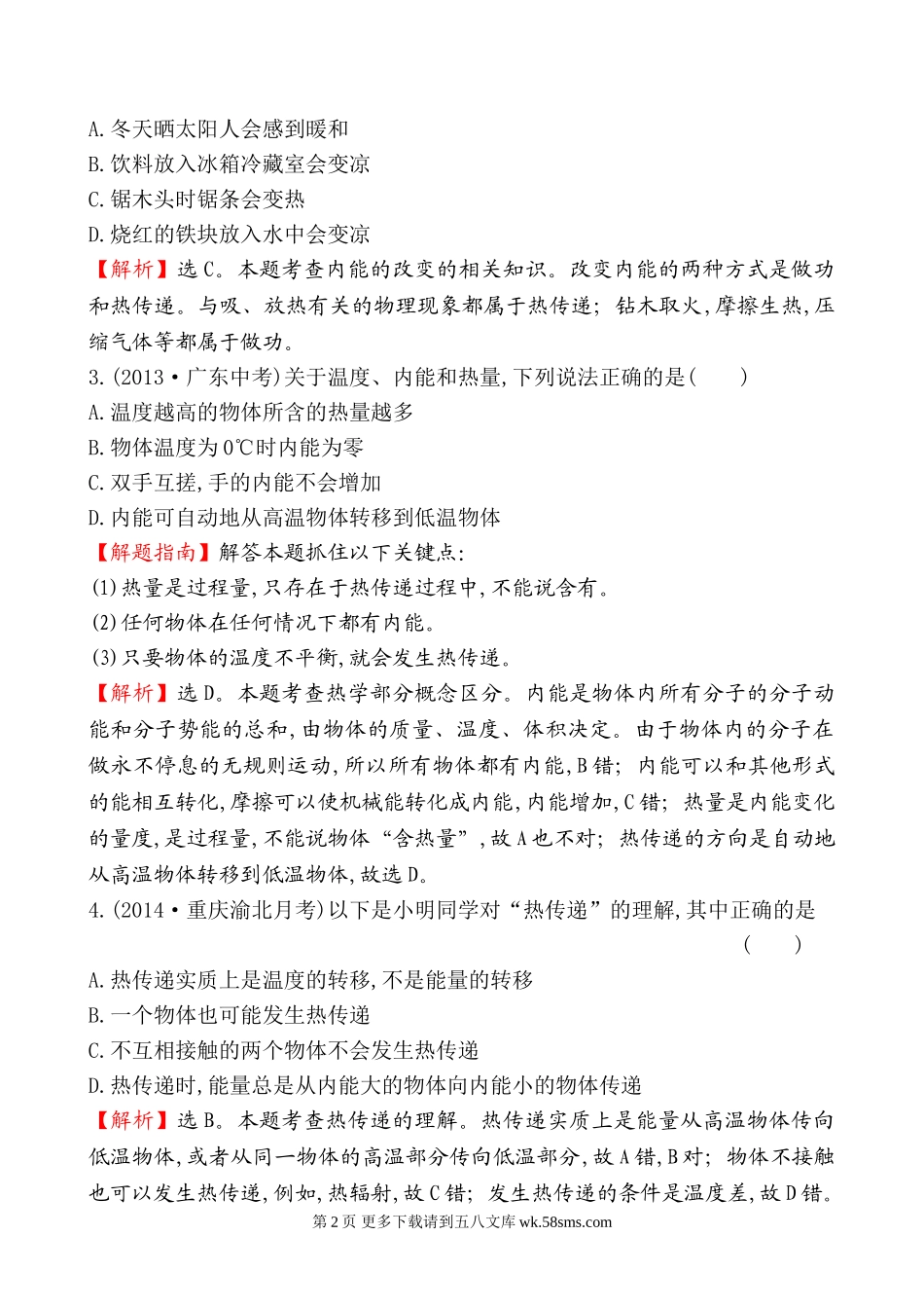 2014年第一节 物体的内能培优练习题及答案解析.doc_第2页