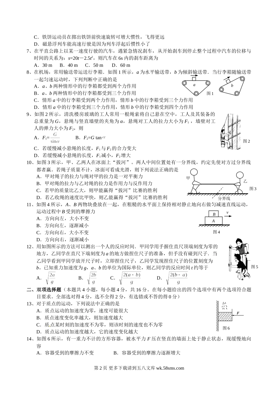 高一物理高一物理期末模拟试题及答案.doc_第2页