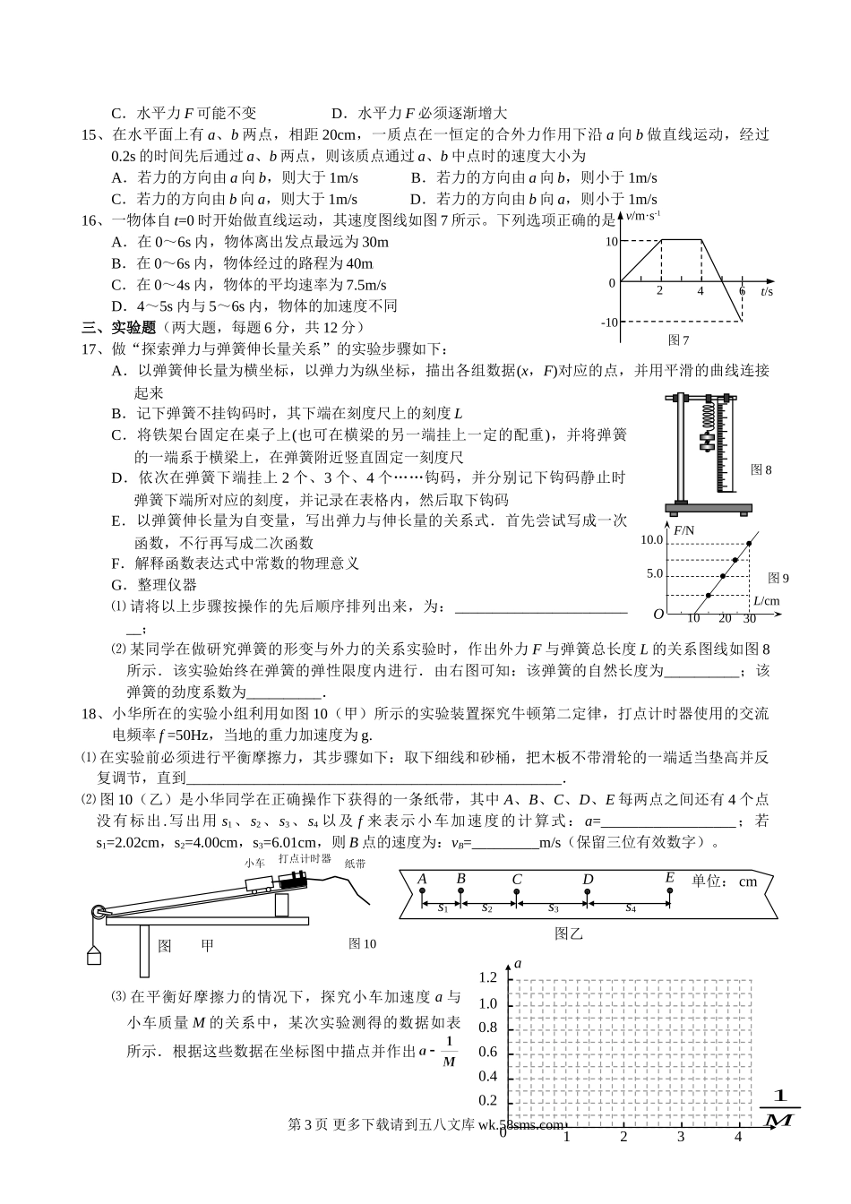 高一物理高一物理期末模拟试题及答案.doc_第3页
