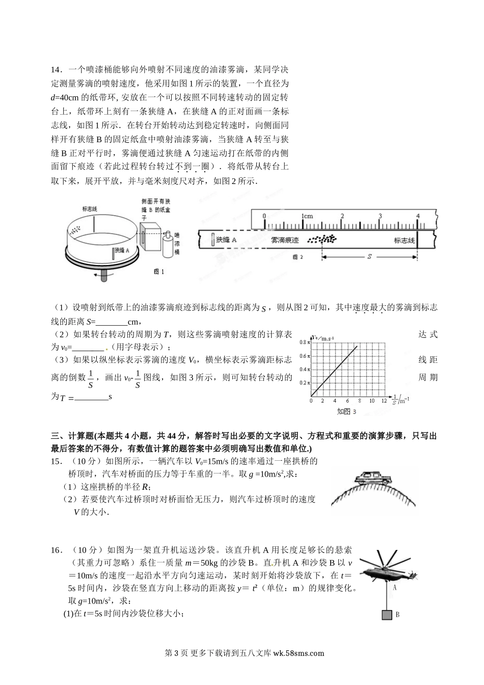 高一物理高一下学期物理期中试题及答案.doc_第3页