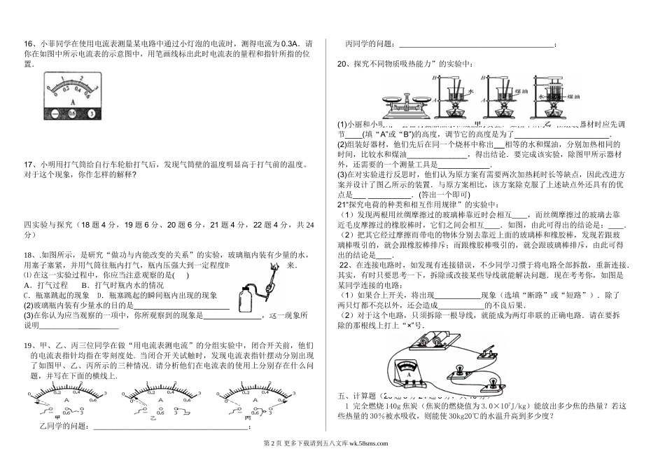 2018年第一学期九年级物理第一次月考试卷.doc_第2页