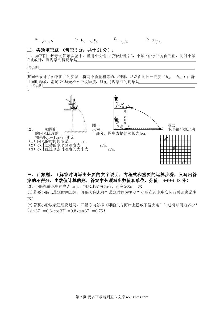 高一物理高中物理必修2第一章测试题及答案.doc_第2页
