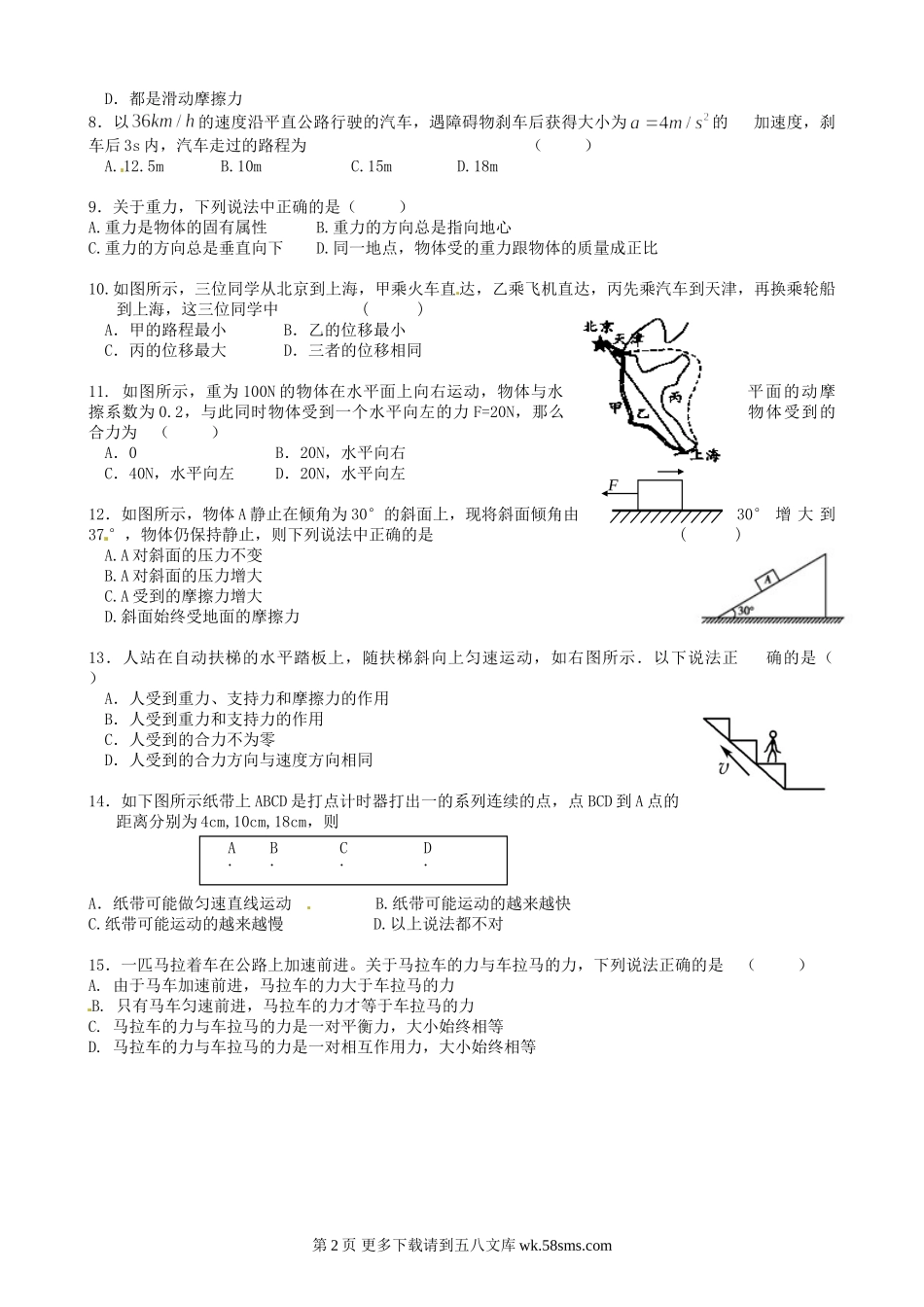 高一物理哈尔滨三十二中高一物理上学期期末试题及答案.doc_第2页
