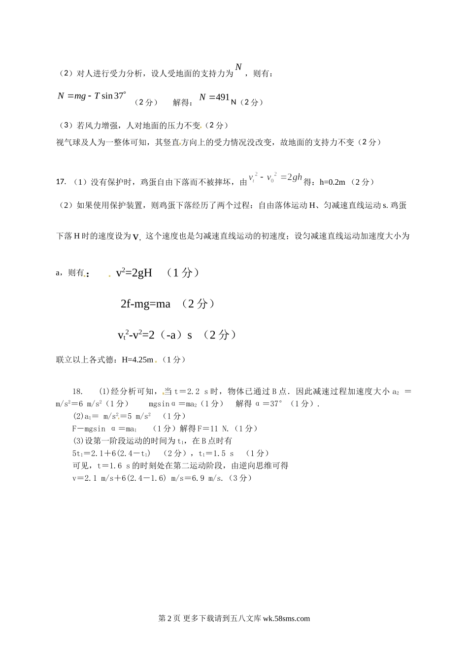 高一物理湖南省六校联盟高一上学期期末联考物理试题有答案.doc_第2页