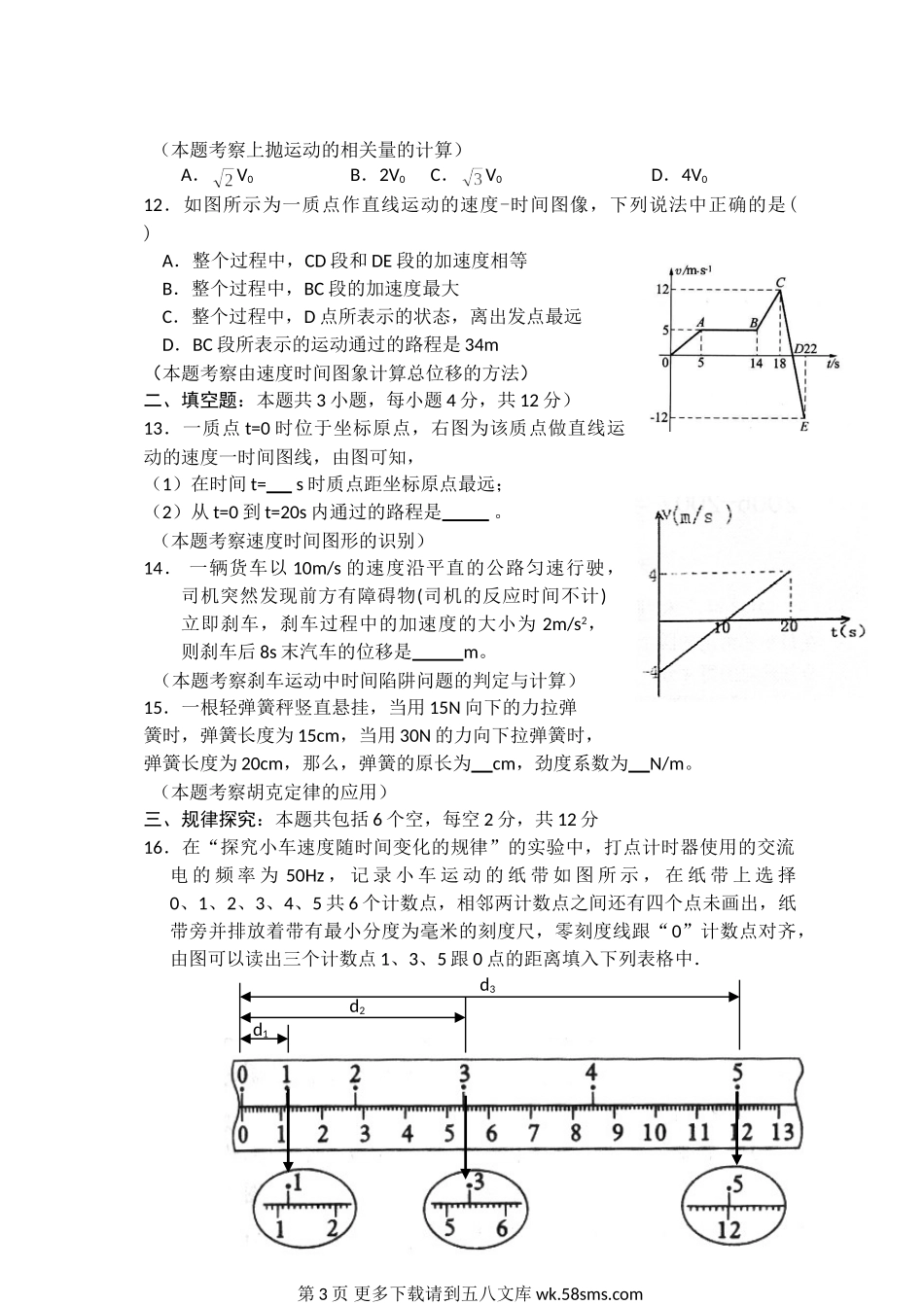 高一物理沪科版高一物理期中测试题及答案.doc_第3页