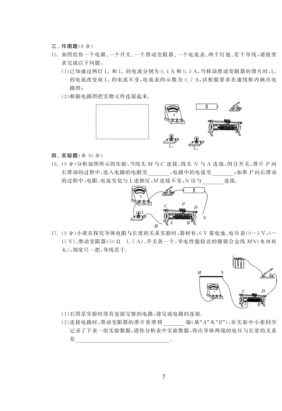 初三物理九年级物理2014北师大版九年级物理第十一章简单电路达标测试卷及答案.pdf_第3页