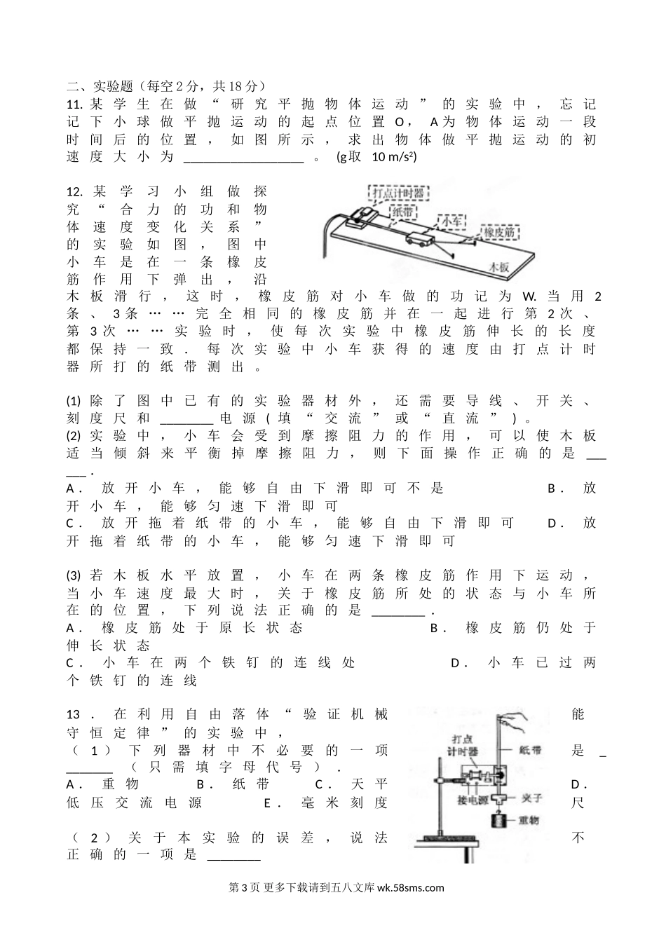 高一物理淮南市第二学期高一物理期末试题及答案.doc_第3页