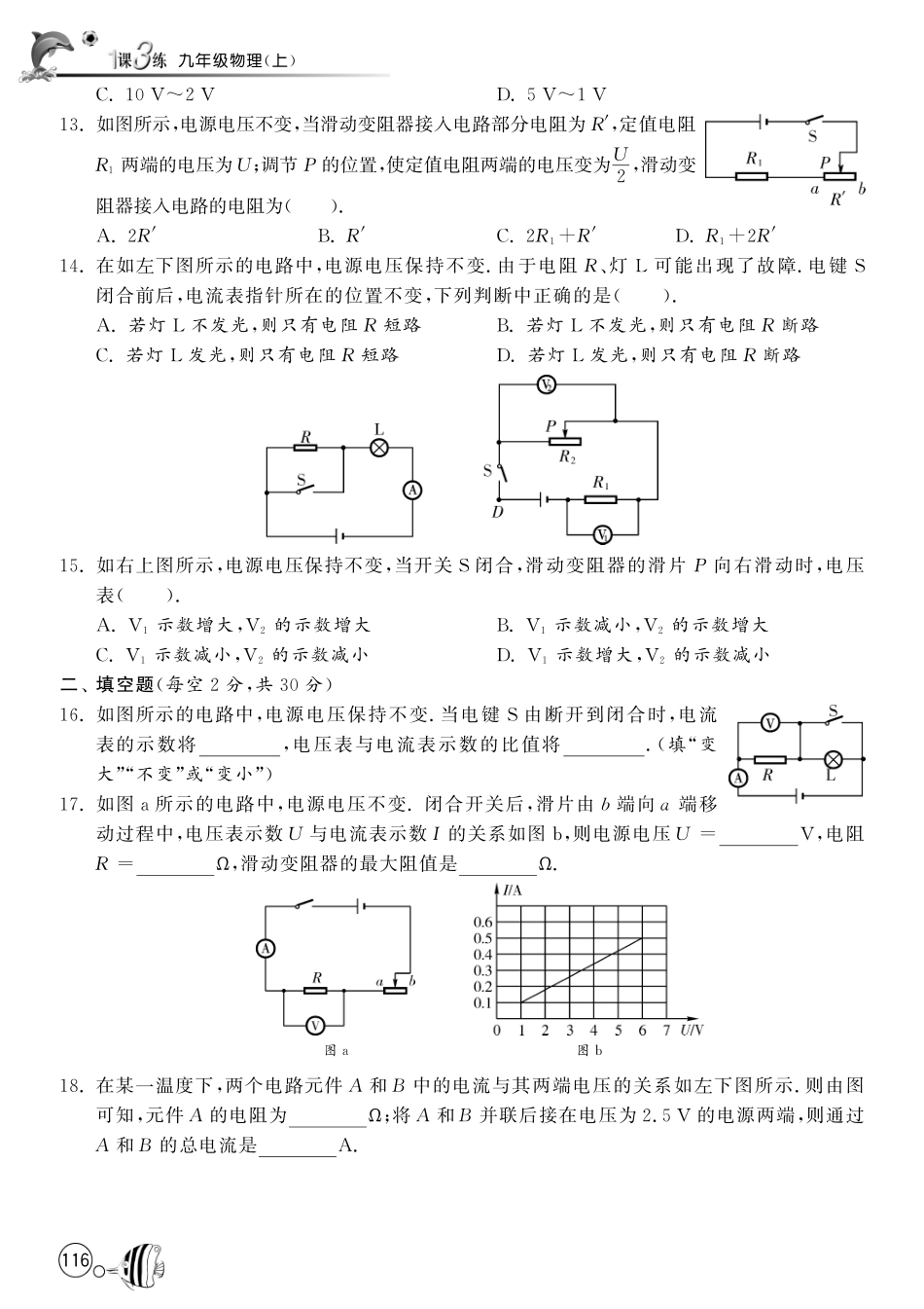 初三物理九年级物理2014北师大版九年级物理上册专题复习训练卷三.pdf_第2页