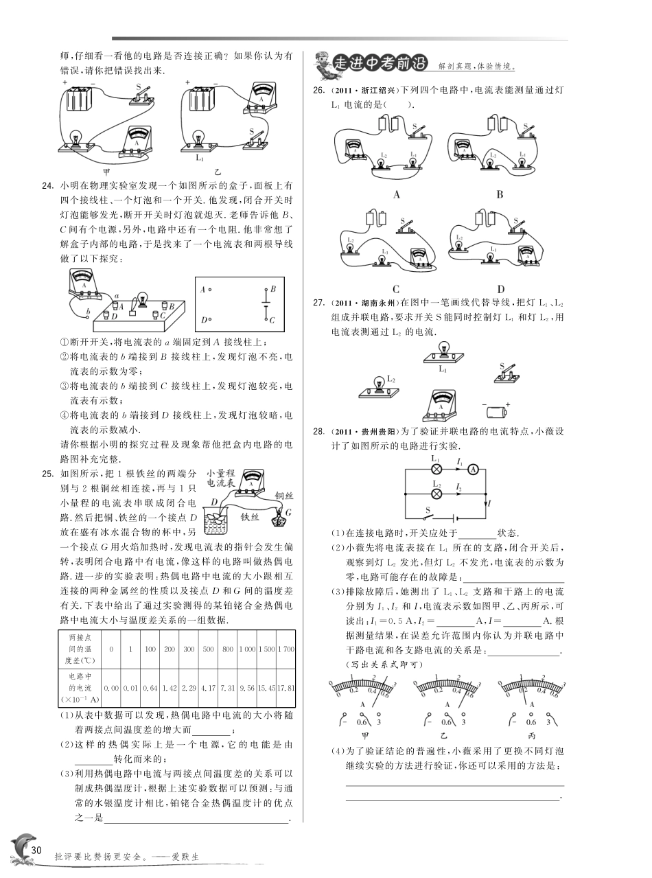 28唯有真才能血性,须从本色见英雄。———黄兴三、电荷四、电流1.会用类比的方法建立电流的概念,知道电流的单位及换算关系.2.认识电流表,会正确使用电流表.3.通过实验探究,能自行归纳出串、并联电路中电流的规律....