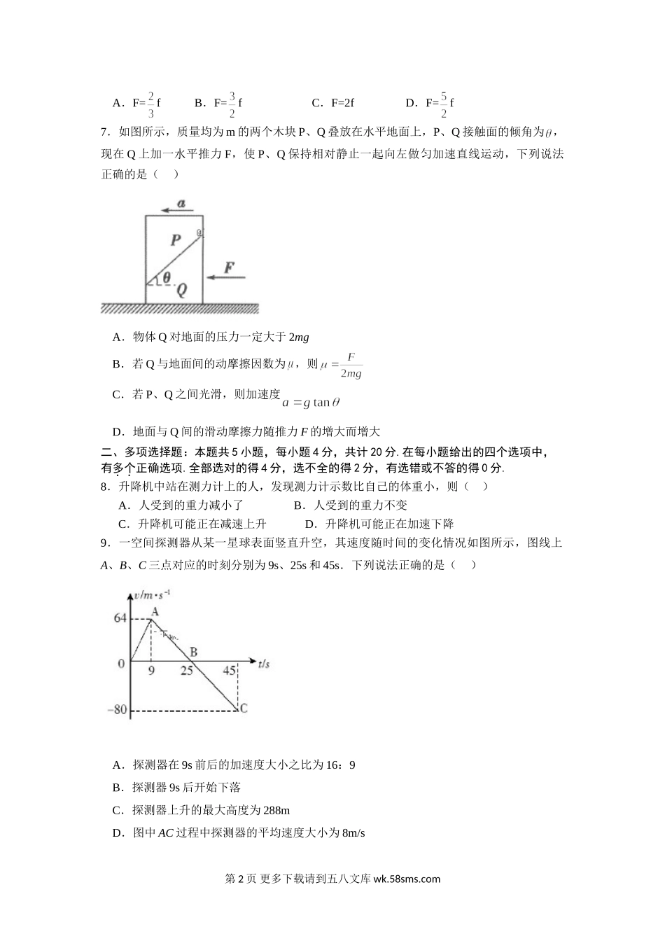 高一物理江苏省姜堰二中高一第二次月考物理试卷.doc_第2页