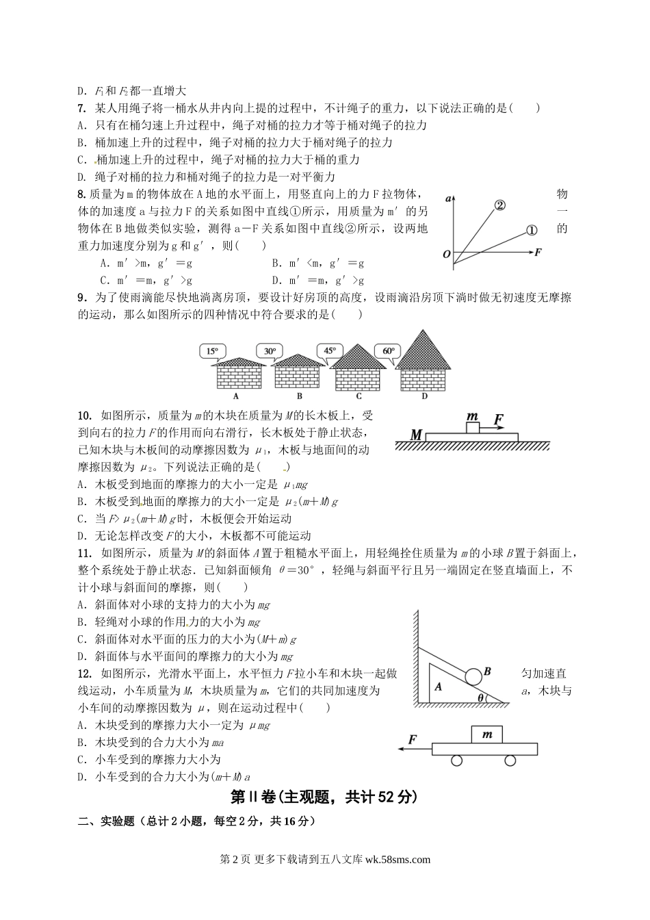 高一物理辽源市东辽一中高一上学期期末考试物理试题及答案.doc_第2页