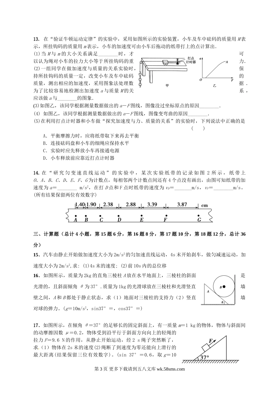 高一物理辽源市东辽一中高一上学期期末考试物理试题及答案.doc_第3页