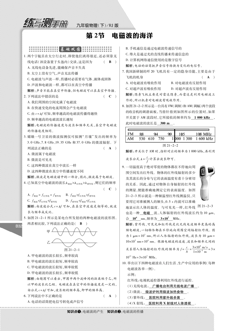 初三物理九年级物理2015年九年级物理第二十一章信息的传递练习题及答案解析.pdf
