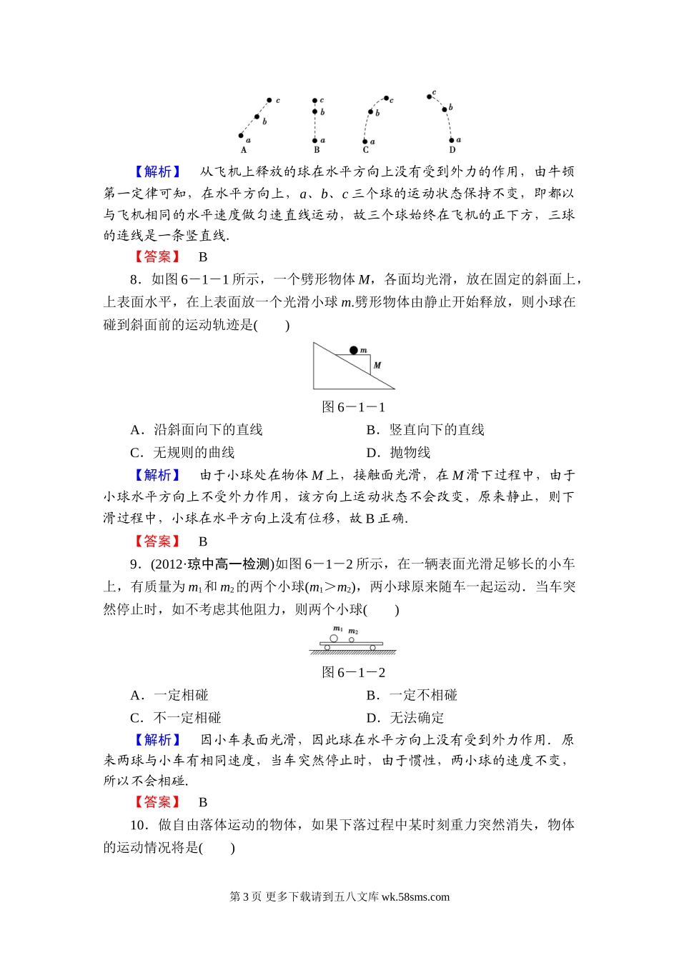 1.伽利略理想实验揭示了()A.若物体运动,那么它一定受力B.力不是维持物体运动的原因C.只有受力才能使物体处于静止状态D.只有受力才能使物体运动【解析】伽利略理想实验指出:如果水平面没有摩擦,那么在水平...