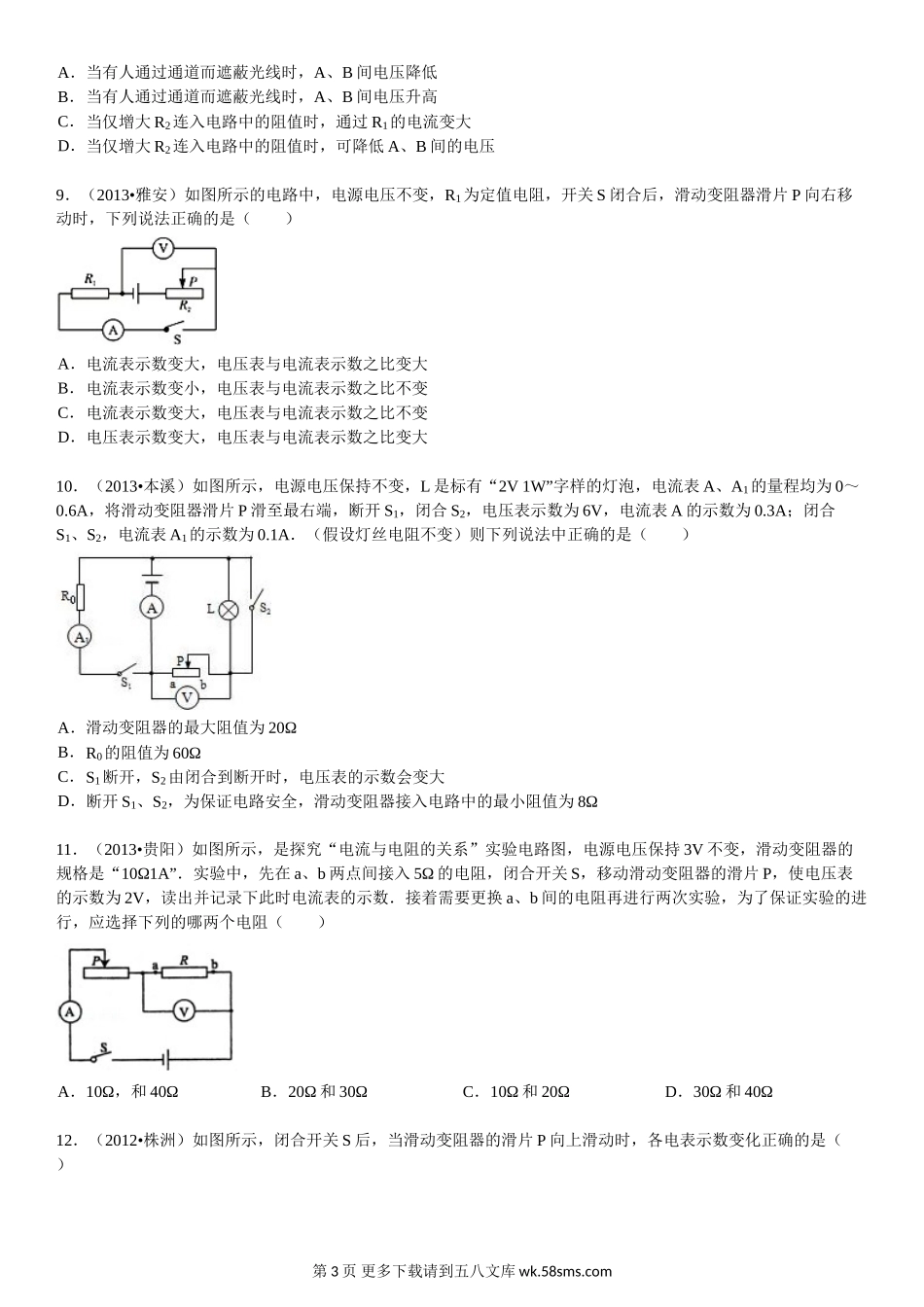 初三物理九年级物理第17章 欧姆定律单元检测题及答案解析.doc_第3页