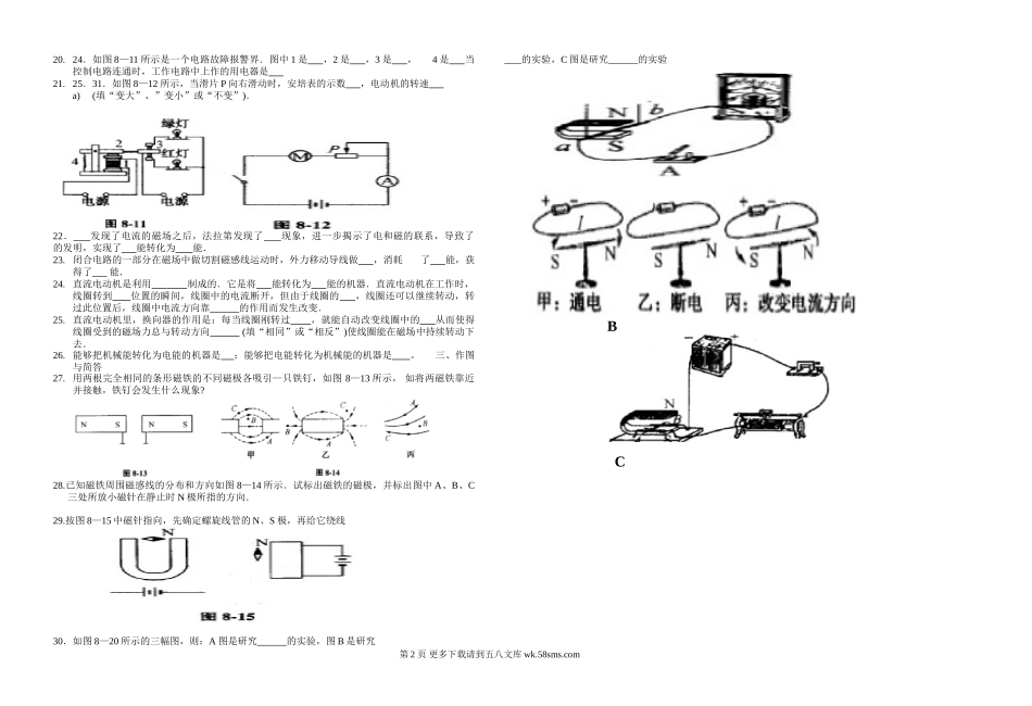 初三物理九年级物理第20章电与磁测试题.doc_第2页