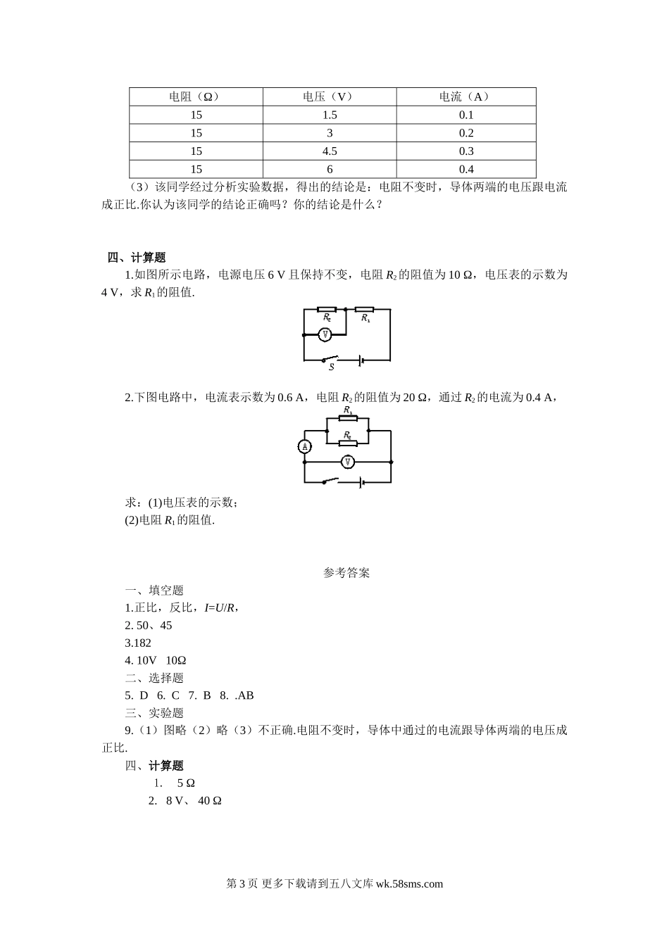 初三物理九年级物理第六章 欧姆定律测试题及答案 按节.doc_第3页