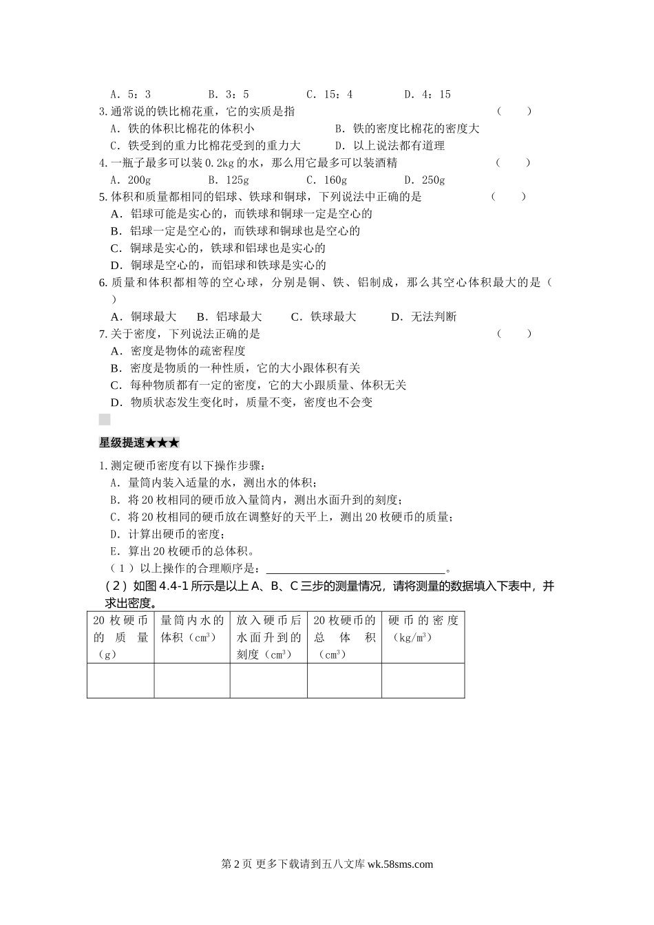 初三物理九年级物理第三节 探究物质的密度练习题.doc_第2页