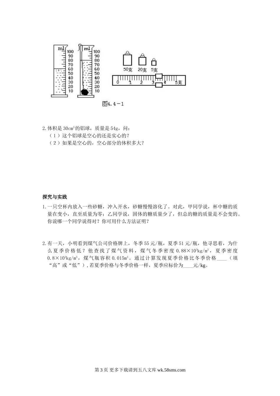 初三物理九年级物理第三节 探究物质的密度练习题.doc_第3页