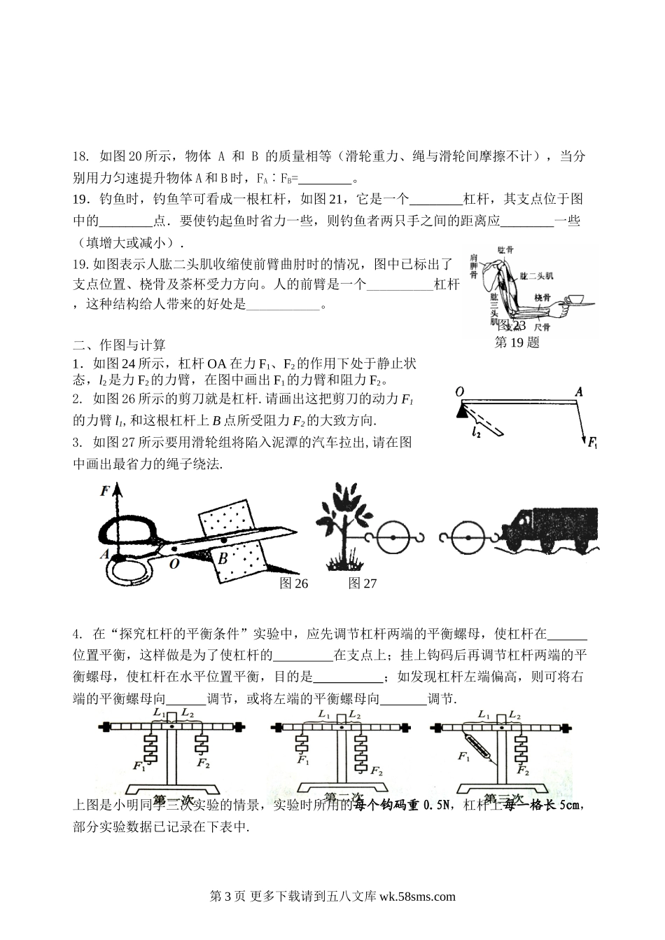 初三物理九年级物理第十一章简单机械和功复习题A班用.doc_第3页