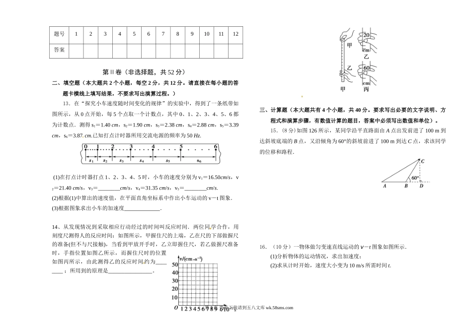 高一物理腾冲八中高一上物理期中试题.doc_第2页