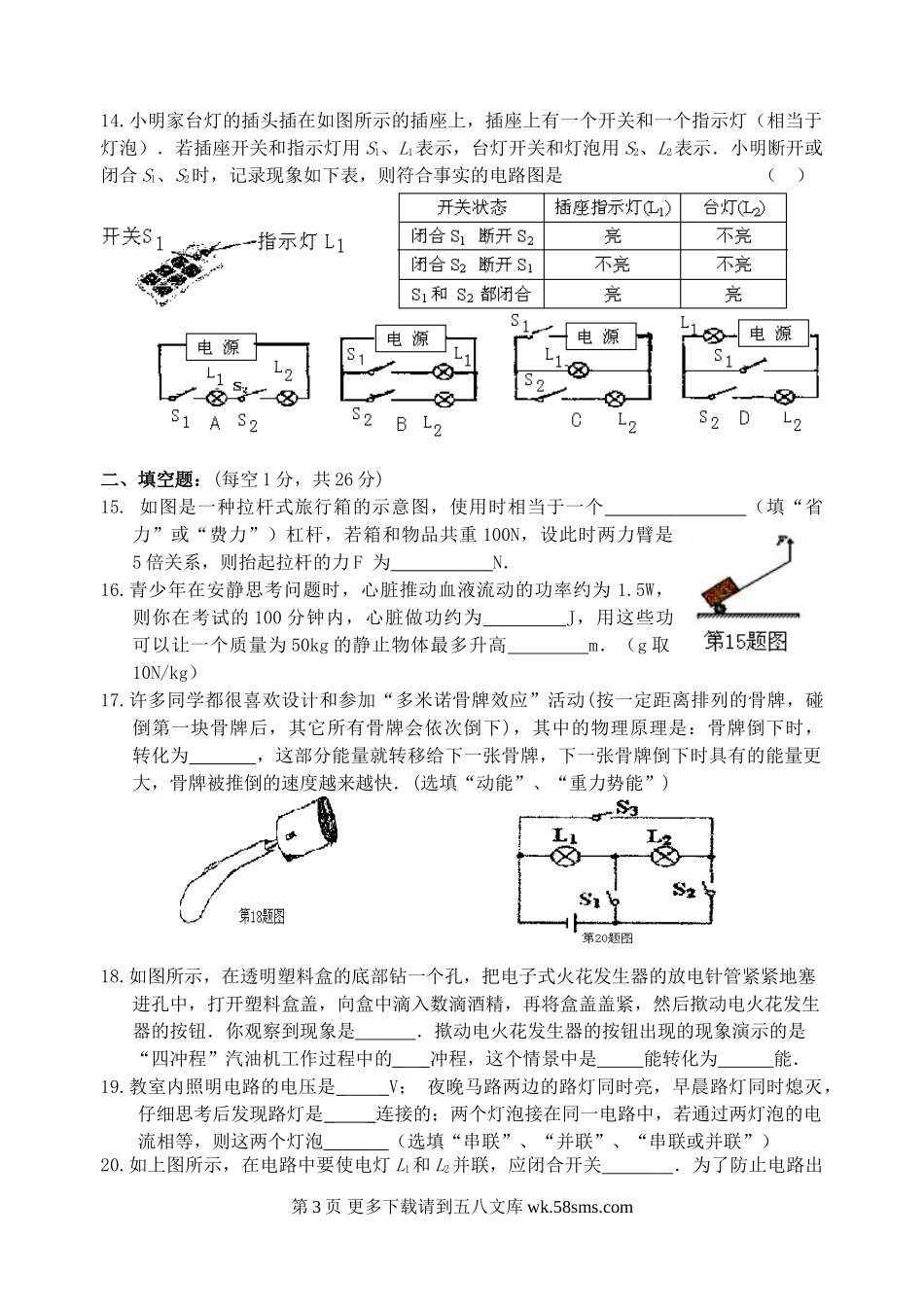 初三物理九年级物理第一学期阶段性学习九年级物理D.doc_第3页