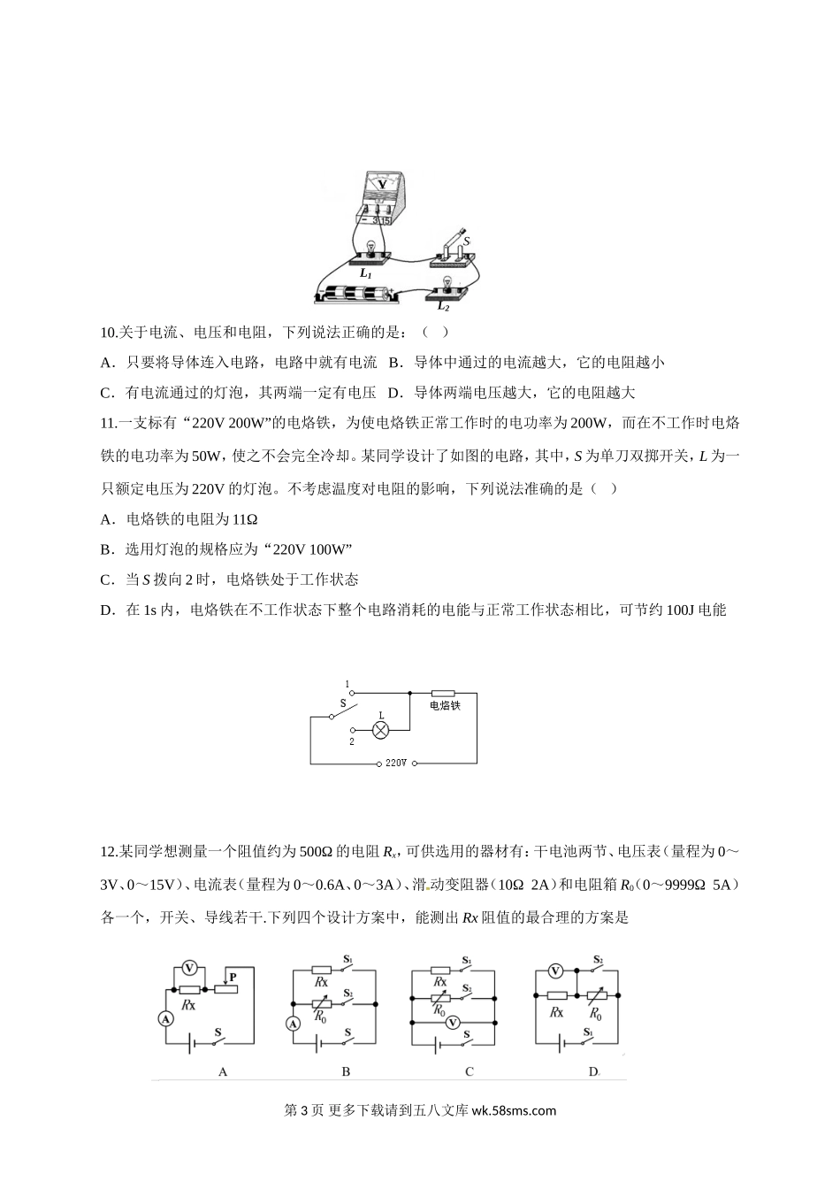 初三物理九年级物理东台市第四教育联盟2016年九年级二调(12月)物理试题及答案.doc_第3页