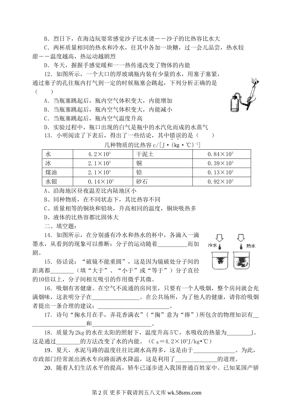 初三物理九年级物理分子动理论与内能测试题及答案(A).doc_第2页