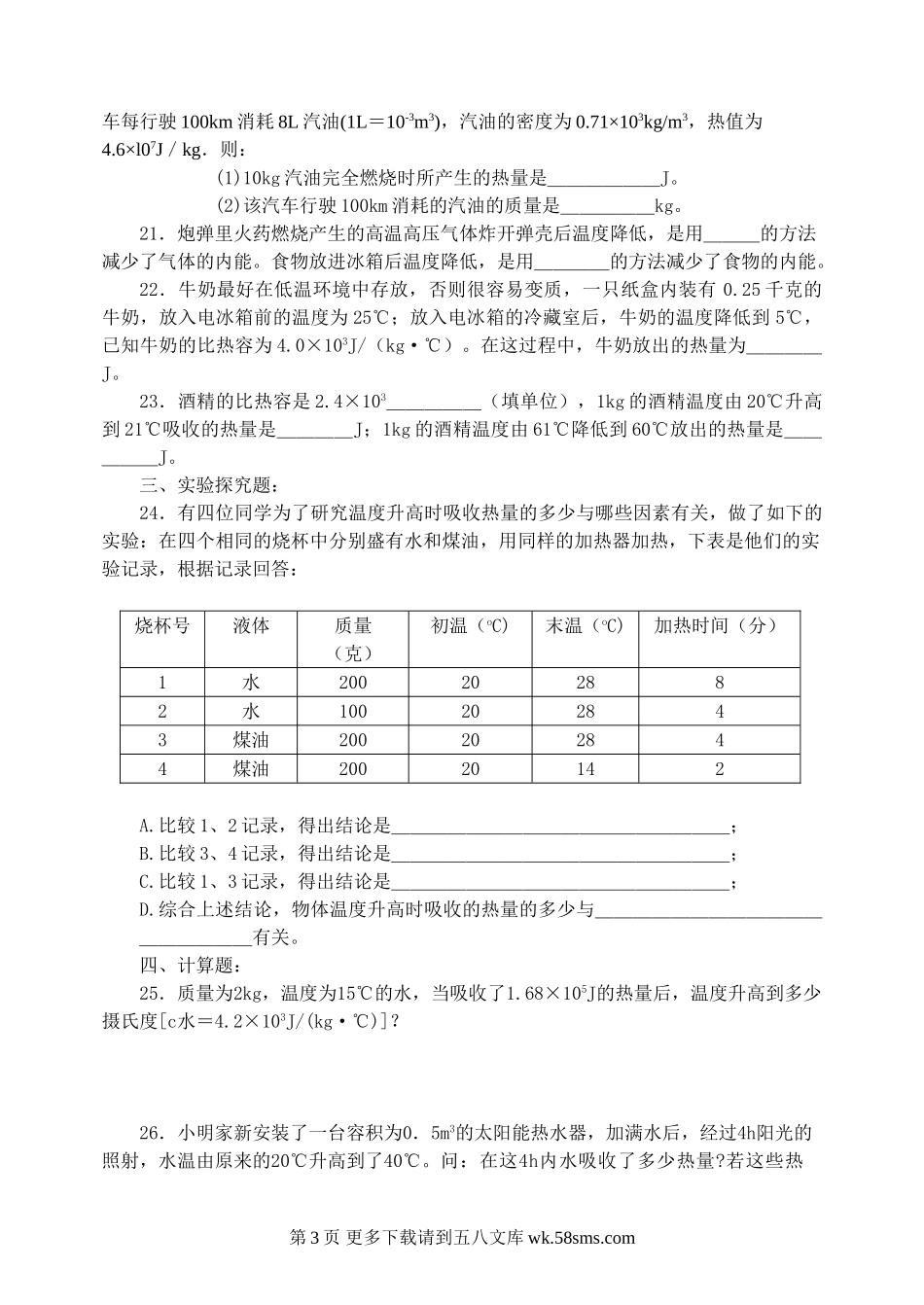 初三物理九年级物理分子动理论与内能测试题及答案(A).doc_第3页