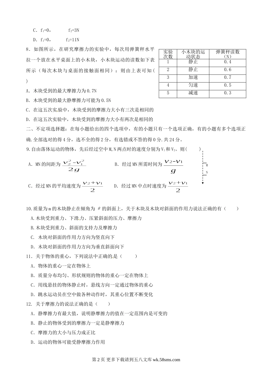 高一物理西湖中学高一物理12月月考试卷及答案.doc_第2页