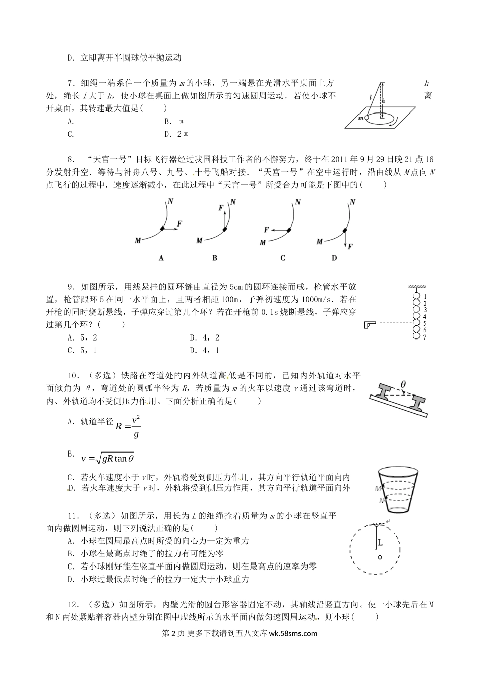 高一物理益阳箴言中学高一物理3月月考试题及答案.doc_第2页