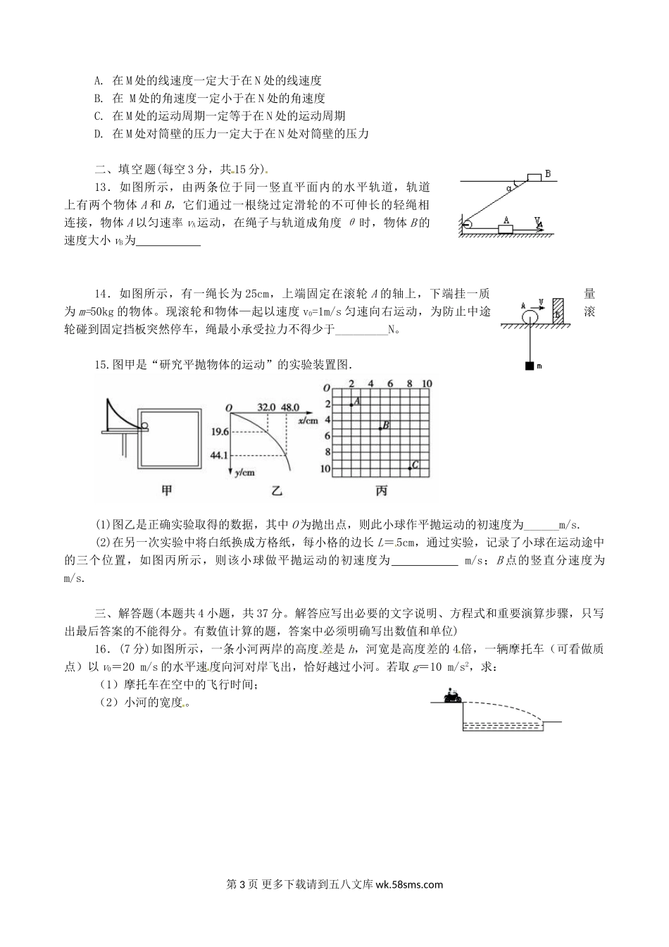 高一物理益阳箴言中学高一物理3月月考试题及答案.doc_第3页