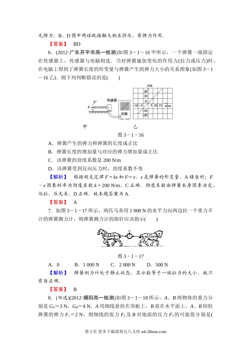 高一物理粤教版第三章 研究物体间的相互作用练习题及答案解析6份.doc_第3页