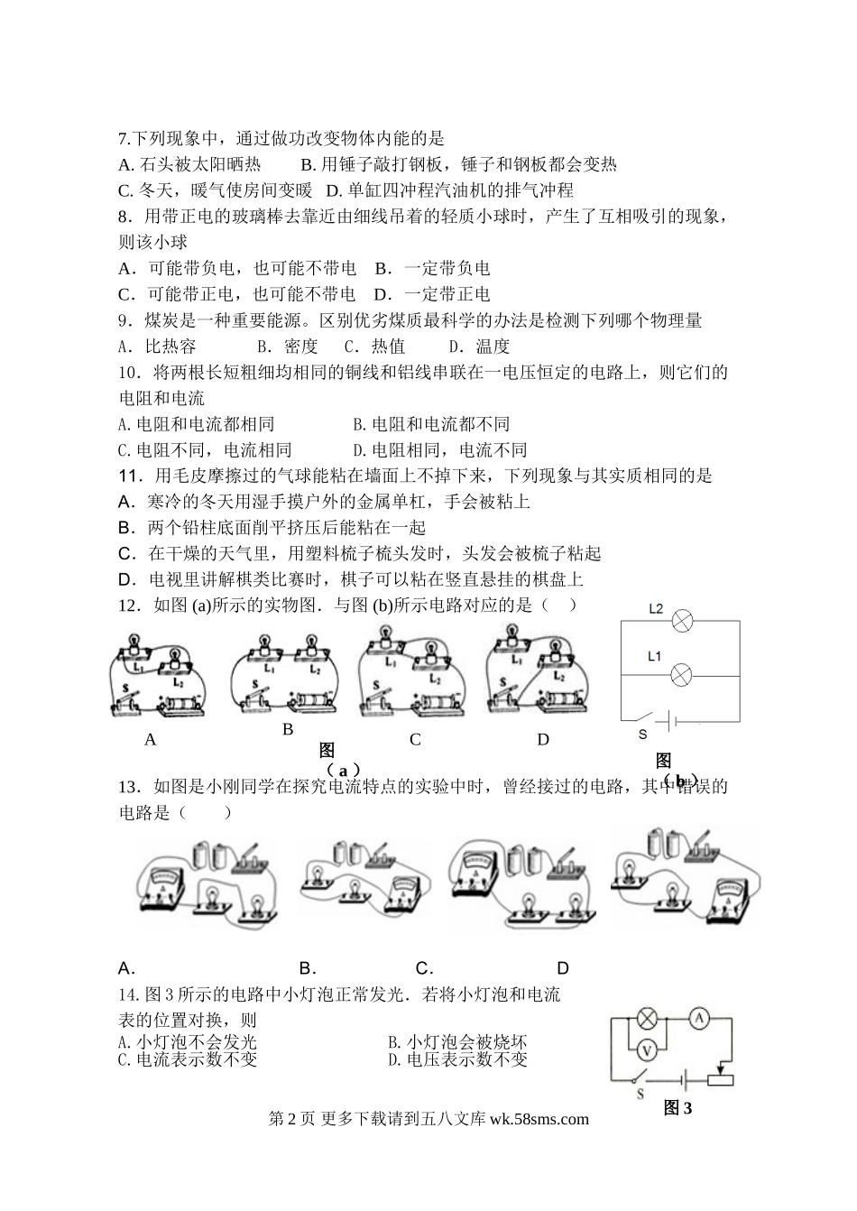 初三物理九年级物理济南市济微中学2015届九年级物理上学期期中考试试题及答案.doc_第2页