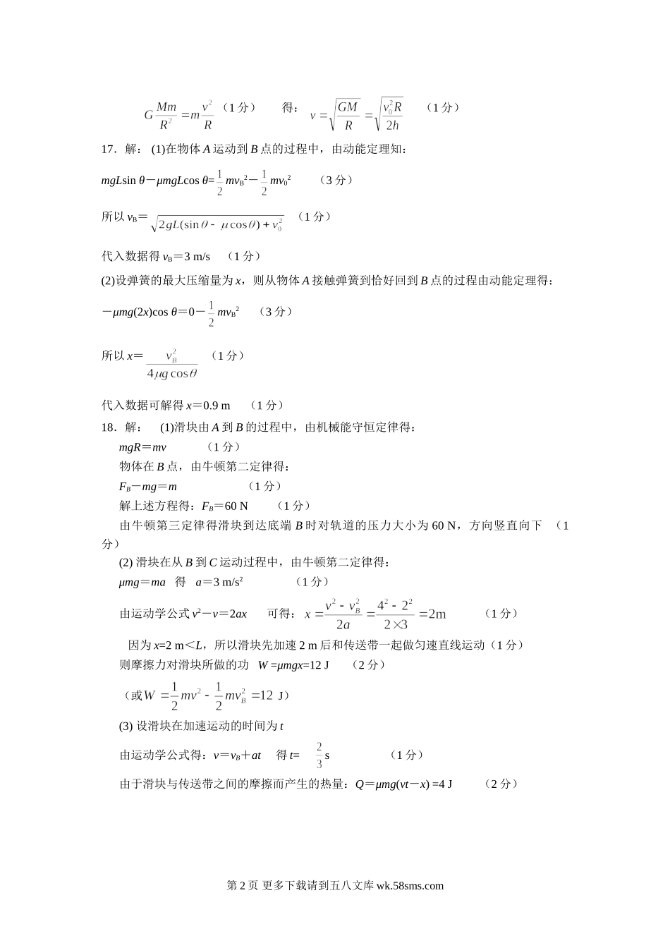 高一物理郑州市高一下学期物理期末考试题及答案.doc_第2页