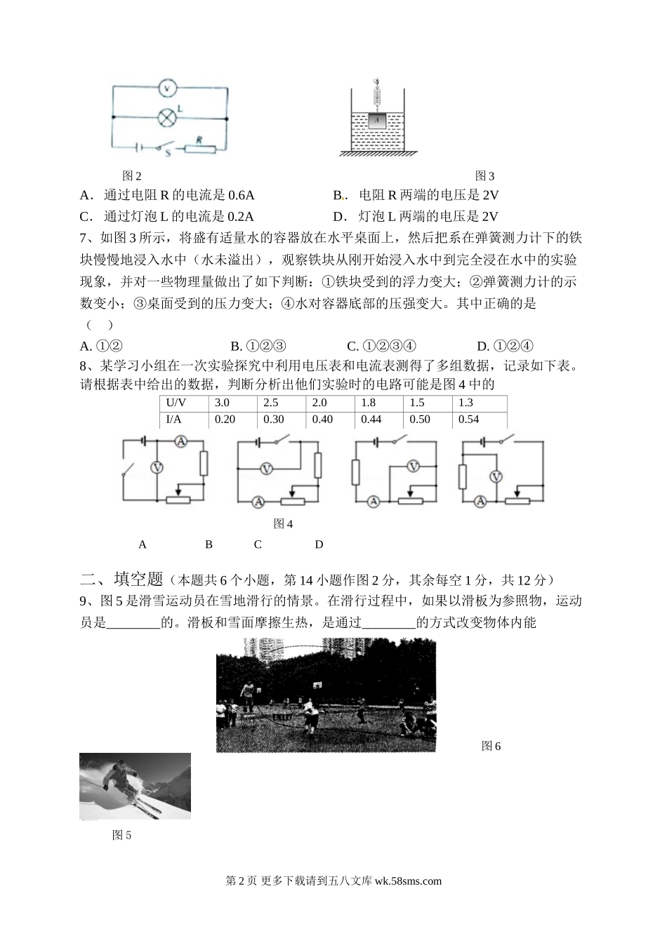 初三物理九年级物理江津市2016九年级下学期物理期中试卷及答案.doc_第2页