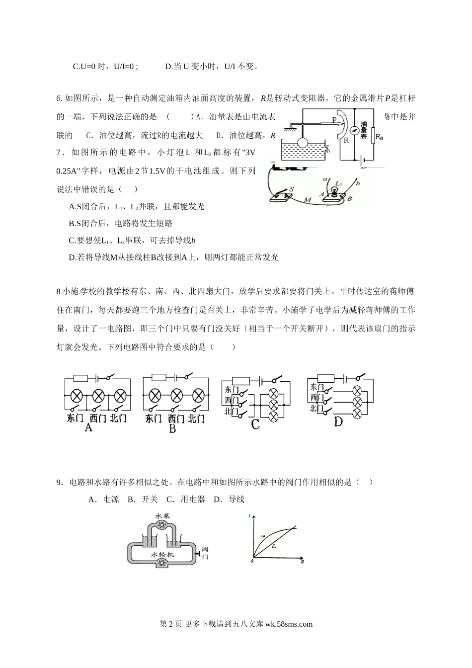 初三物理九年级物理江阴市周庄中学2016-2017年九年级12月月考物理试题.doc_第2页
