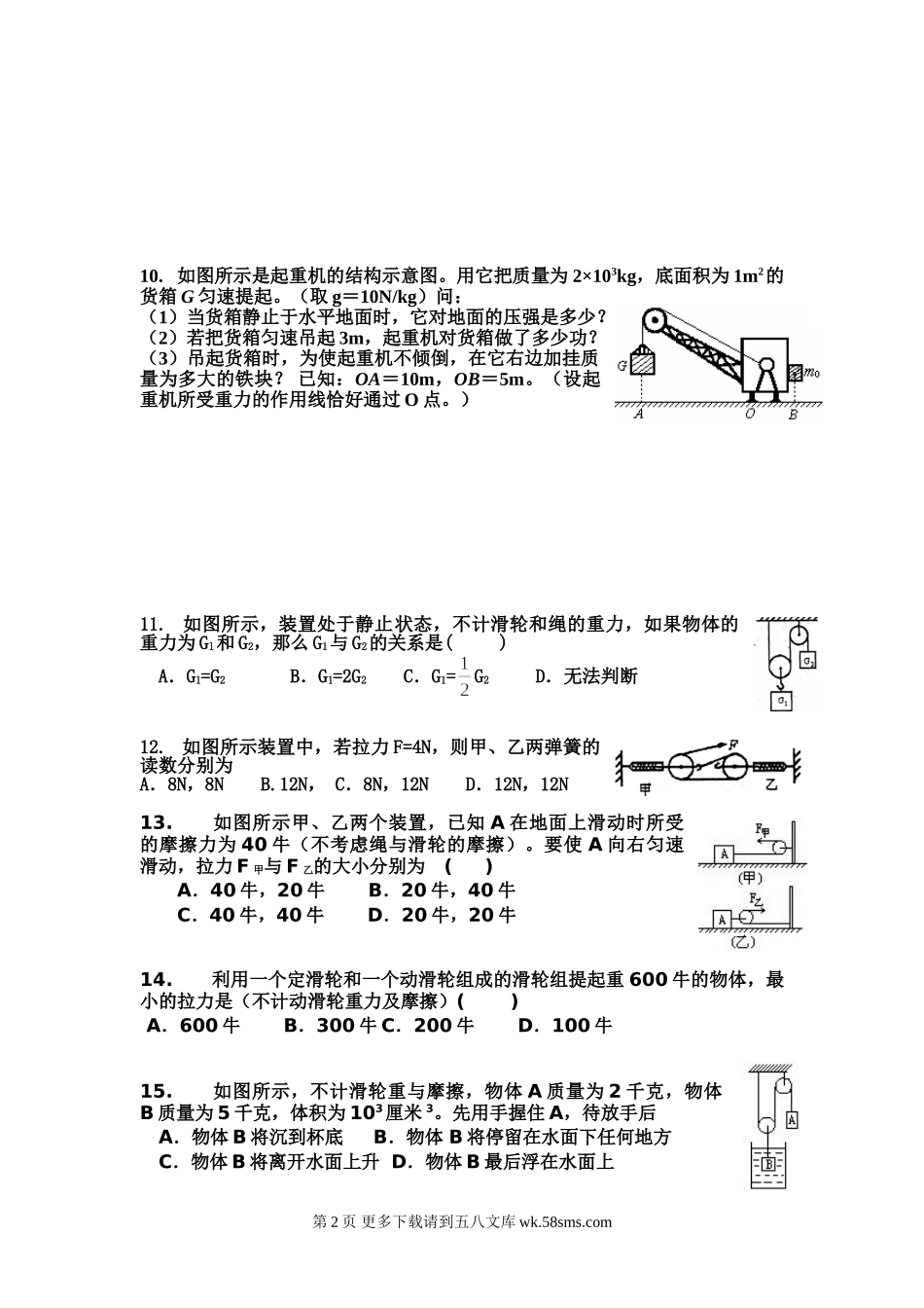 初三物理九年级物理九年级物理期末复习专题---功 功率 机械效率综合复习题.doc_第2页