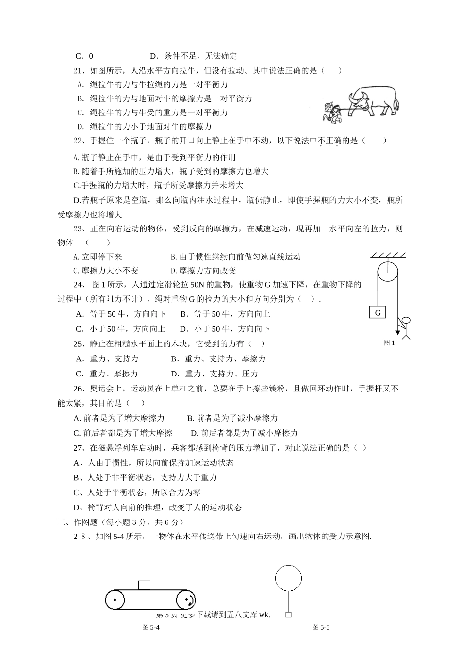力与运动一、填空题(每空1分,共26分)1、人站在公交车上,当汽车突然启动时,人会向倒,这是因为人的脚受到车厢底面的作用,使脚的底部随车一起,可是人的上半身由于而保持原来的静止状态,所以人出现上述现象....