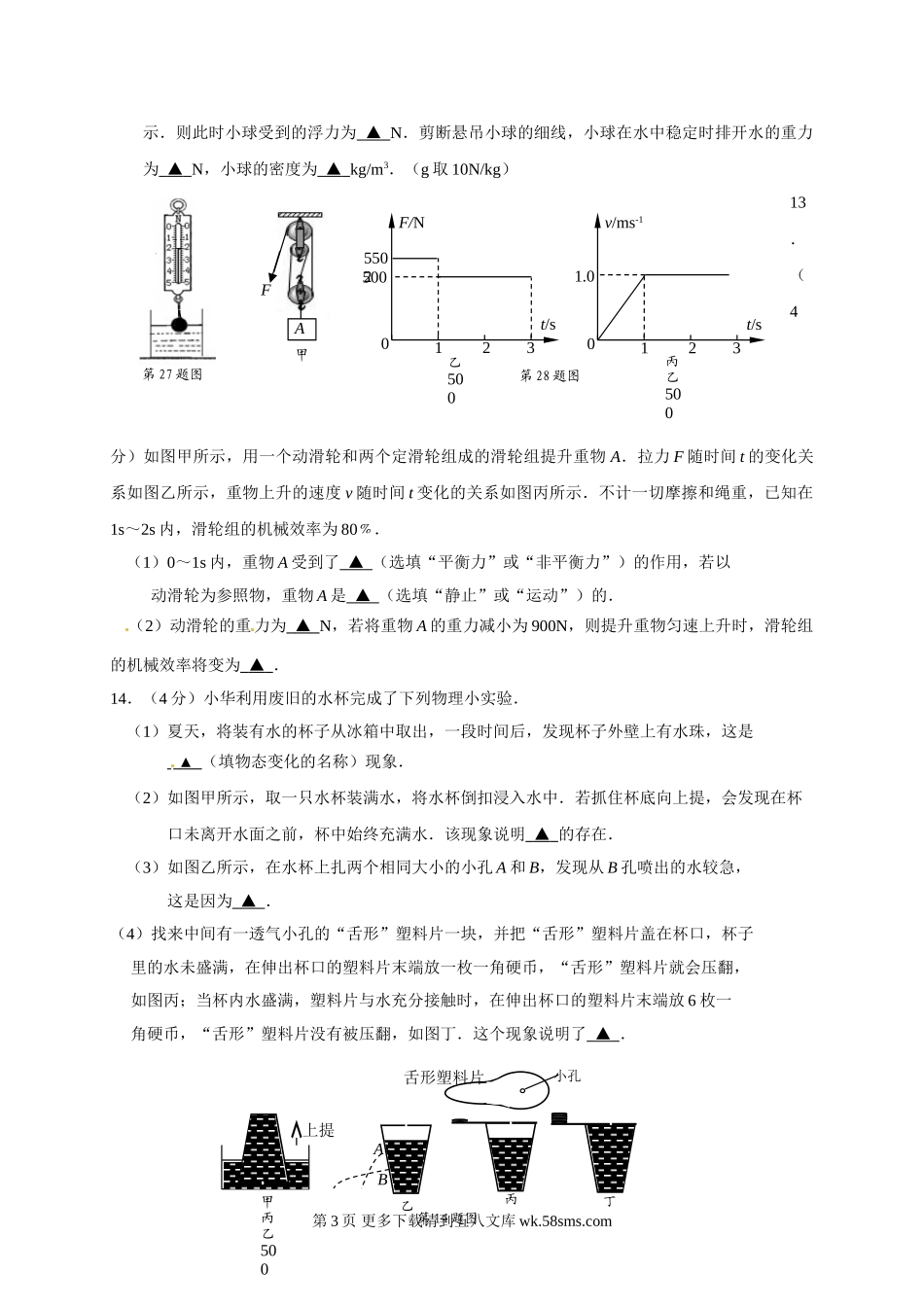初三物理九年级物理南通市通州区实验中学2017年3月中考模拟物理试卷.doc_第3页